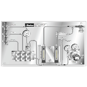 The Parker Analyzer Pressure Regulation and Vent Recovery System automatically and continuously adjusts for variations in gas supply pressures and flows. This system has been engineered to meet the requirement of continuous analyzers designed to operate at constant pressure in order to provide accurate analyses of gases. The combination of pressure and flow regulation provides the required stability even with greatly varying inlet and outlet pressures.